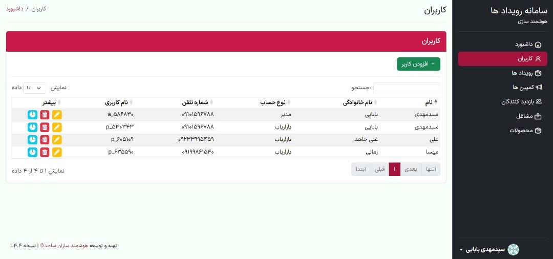در بخش کاربران لیست کاربران قابل مشاهده است.