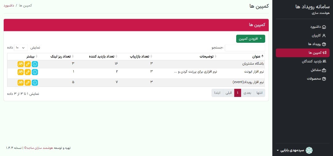 گزینه زرد سمت راست در لیست برای ویرایش هر کمپین بوده و گزینه زرد با تصویر کاربر ارتباط کاربران با کمپین ها را تعیین می کند.